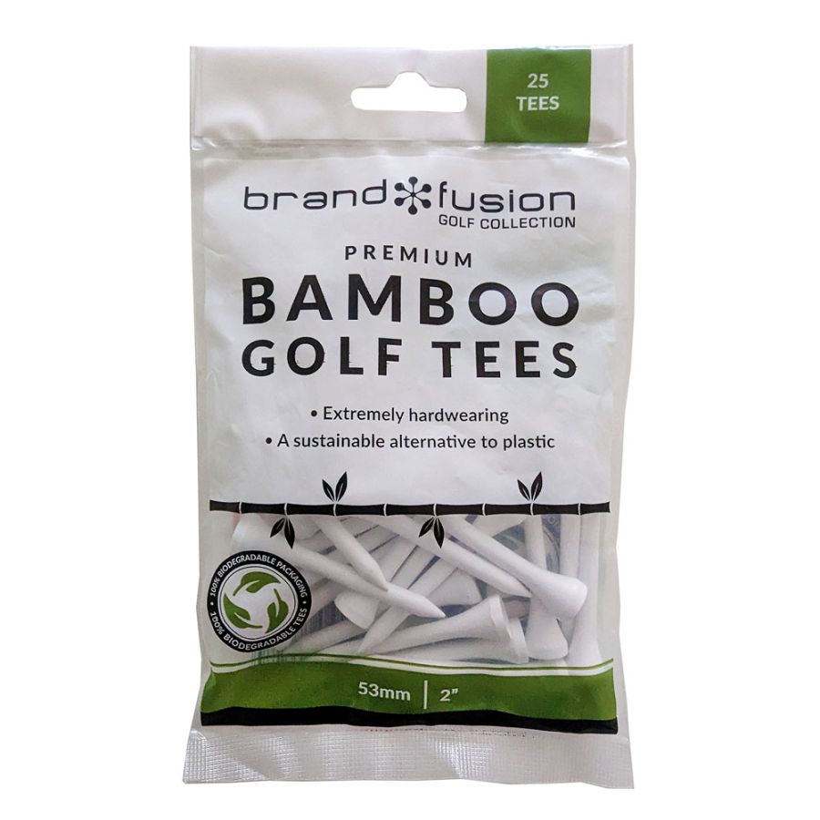 25 Pack of Premium, Biodegradable bamboo golf tees. Extremely hardwearing and a sustainable alternative to plastic.